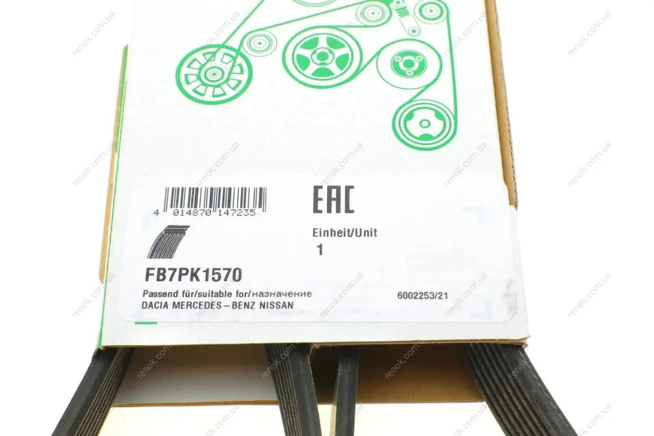 Ремень генератора Renault Kangoo/Megane III/Scenic III 1.2TCe 12- INA FB 7PK1570 (117207504R, 117209058R, 2009930196)