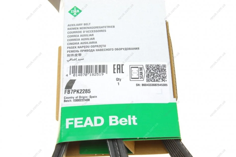 Ремень генератора Hyundai H-1/Starex/Kia Sorento 2.5 CRDI 01- (7PK2285) INA FB 7PK2285 (kq4070900ab, q4070900, 252124a000)