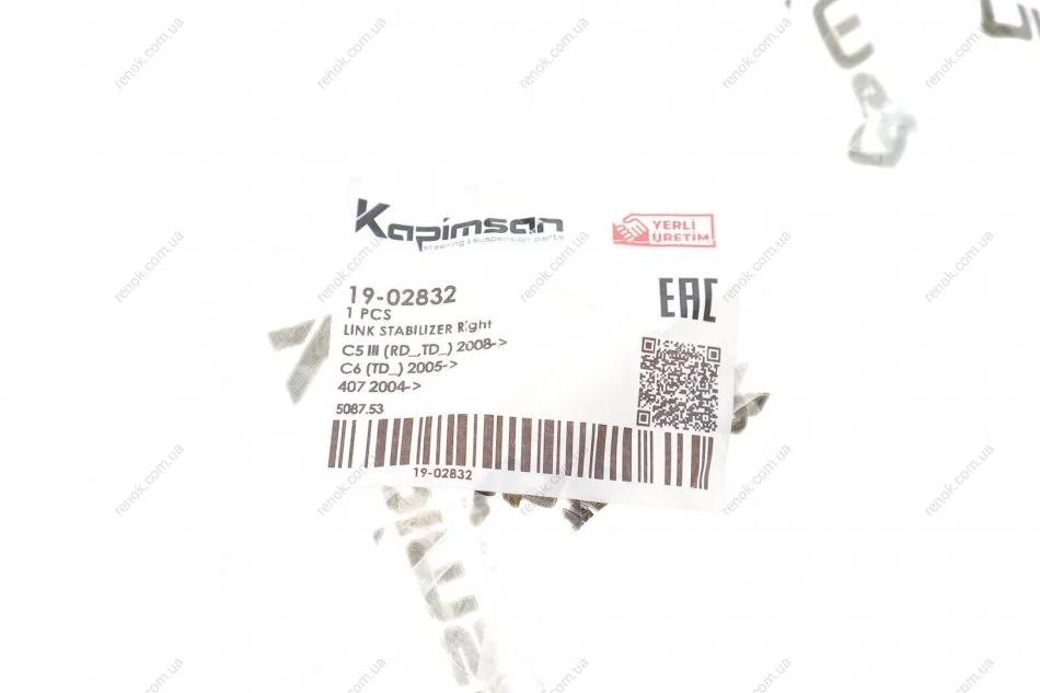 Тяга стабилизатора (переднего) (R) Citroen C5 08-/C6 05-12/Peugeot 407 04- KAPIMSAN 19-02832 (1607326180, 508753)