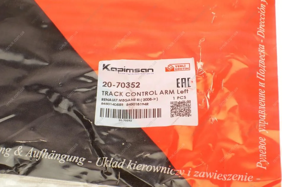 Рычаг подвески (передний/снизу) (L) Renault Scenic III/Megane III 08-/Fluence 10- KAPIMSAN 20-70352 (545014055R, 545015167R, 545015824R)