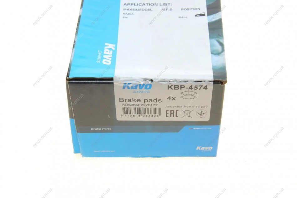 Колодки тормозные (передние) Ford Ranger 11- KAVO KBP-4574 (ucyr3323z, ucyr3323za, ucye3323z)