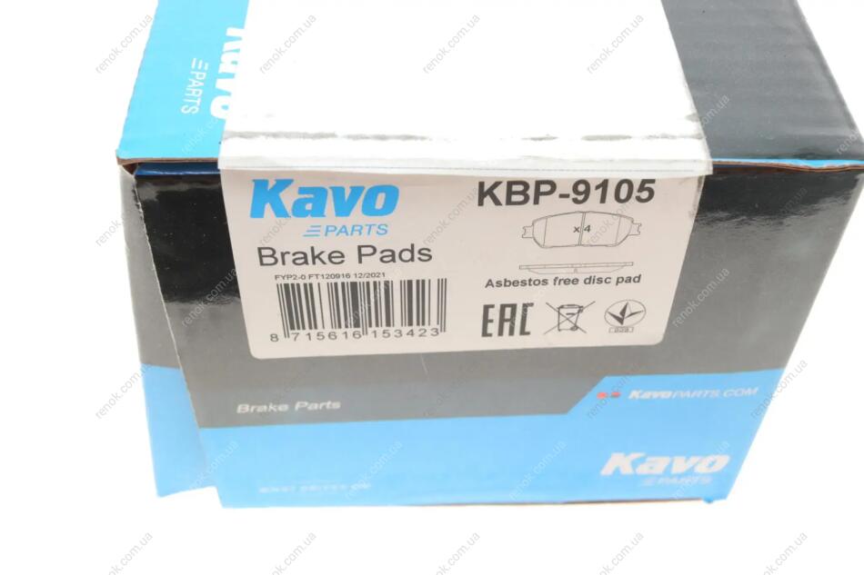 Тормозные колодки (передние) Toyota Camry/Lexus ES 01-06 KAVO KBP-9105 (0446504080, 04465AZ006TM, 04465AZ007TM)