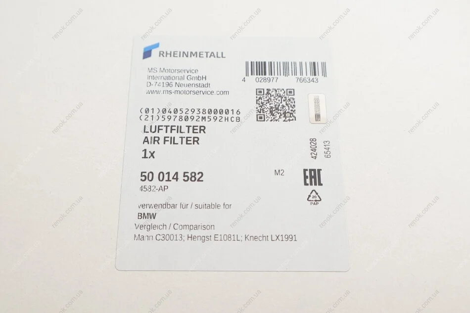 Фильтр воздушный BMW X3 (F25) 10-/X4 (F26) 14-18 N52/N20 KOLBENSCHMIDT 50014582