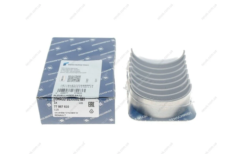 Вкладыши шатунные Renault Trafic 2.0dCi (+0.25) KOLBENSCHMIDT 77867610