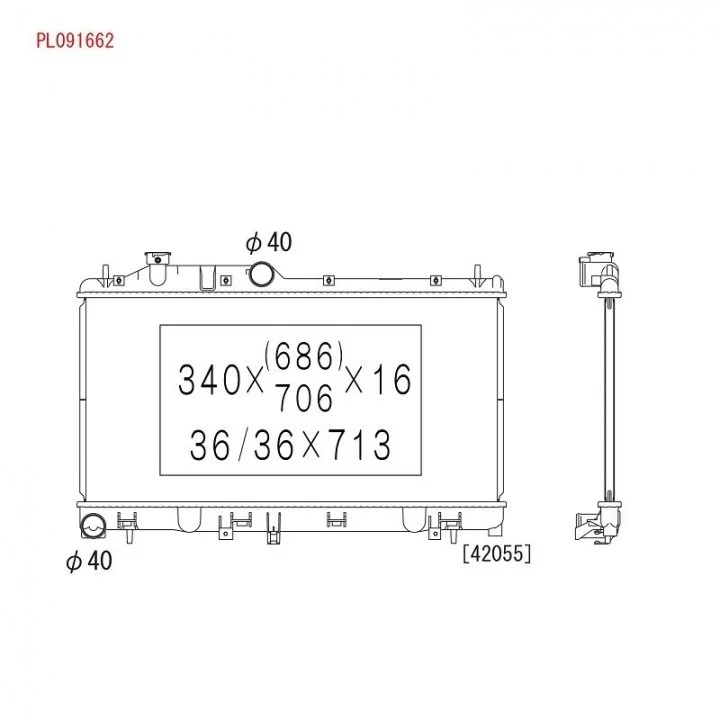 Размеры радиатора: 340x686x16