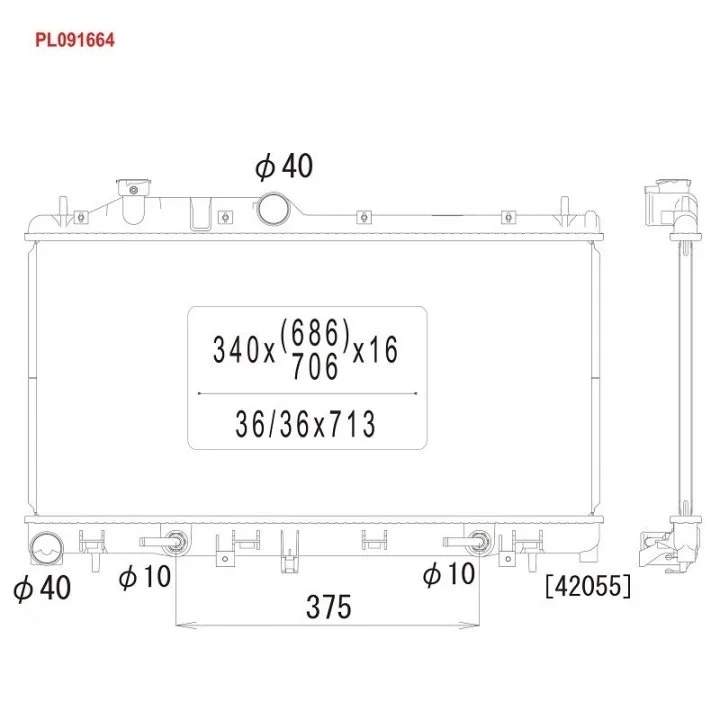 Размеры радиатора: 340-706-16