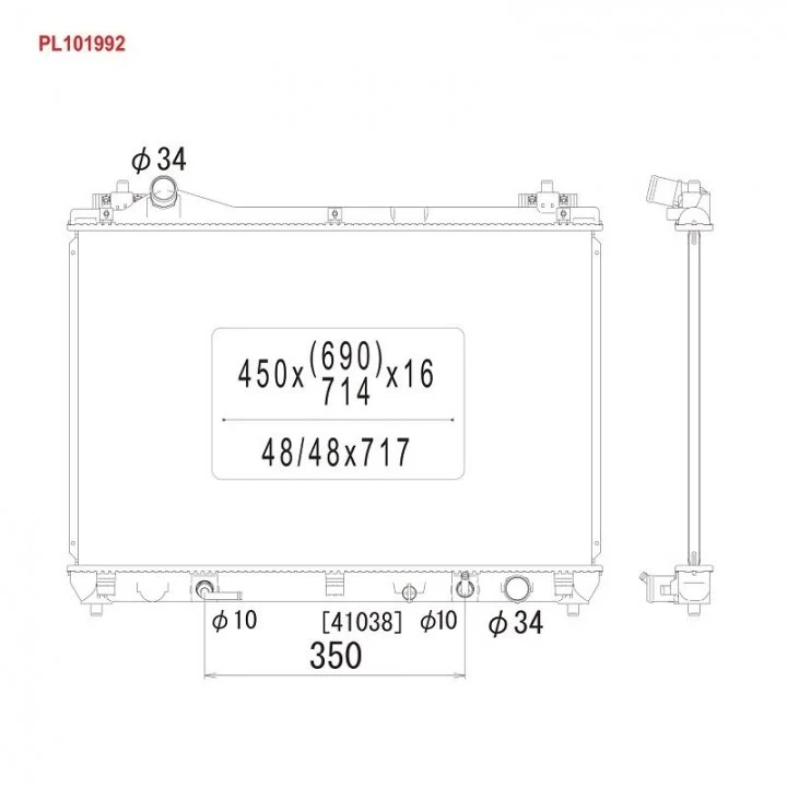 Размеры радиатора: 450-714-16