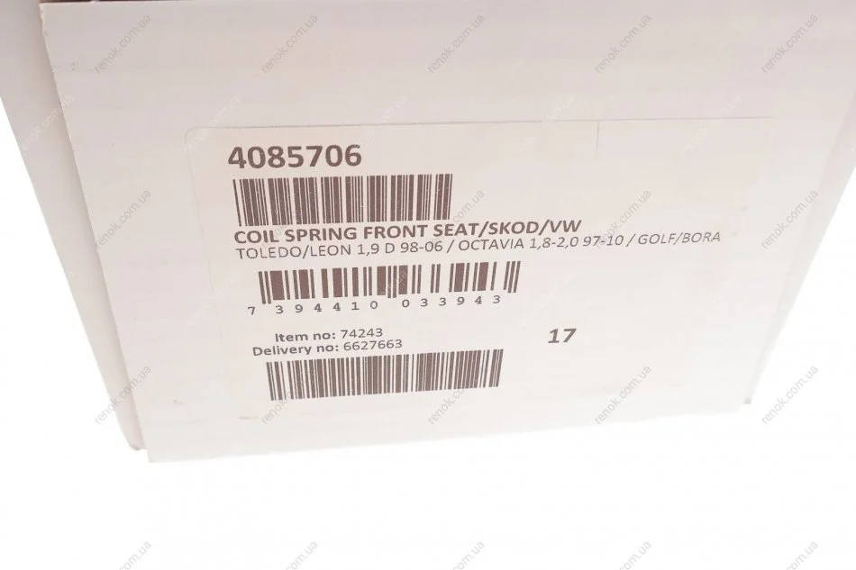 Пружина (передняя) Seat Leon/Toledo 1.9TDI/SDI 99-06/Skoda Octavia 1.8/T/1.9SDI/TDI/2.0 96-10 LESJOFORS 4085706