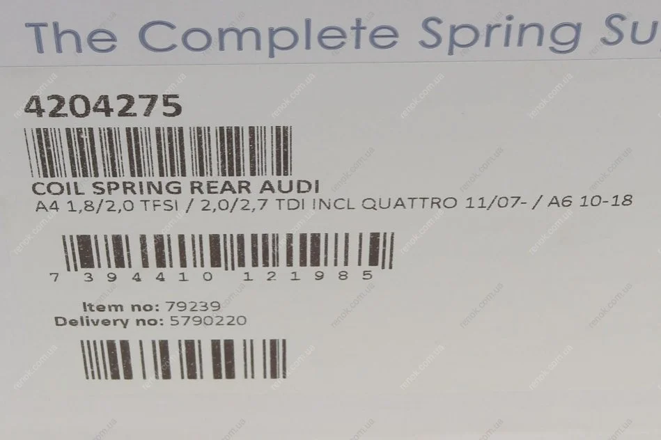 Пружина (задняя) Audi A4/A6 1.8TFSI/2.0TDI/TFSI/2.7TDI/2.8FSI/3.0TDI 07-18 (седан) (без спорт.х.ч) LESJOFORS 4204275 (8K0511115DF)