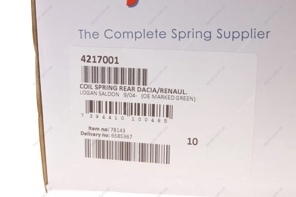 Пружина (задняя) Dacia Logan/Renault Logan 1.4/MPI/1.5dCi/1.6/Bifuel/MPI 04- (седан) (зеленая) LESJOFORS 4217001 (6001547493, 8200216742)