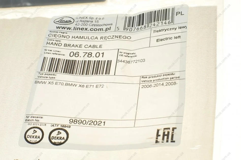 Трос ручника (задний) (R) BMW X5 (E70)/X6 (E71/E72) 06-14 (967/721 мм) LINEX 06.78.01 (34436772103)