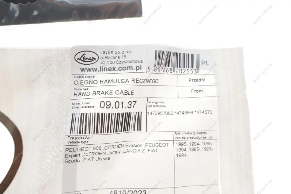 Трос ручника LINEX 09.01.37 (4745E9, 4745T5, 1472957080)