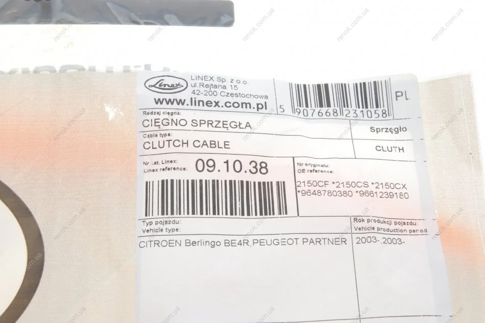 Трос зчеплення LIN09.10.38 LINEX 09.10.38 (2150CF, 9648780380R, 2150CX)