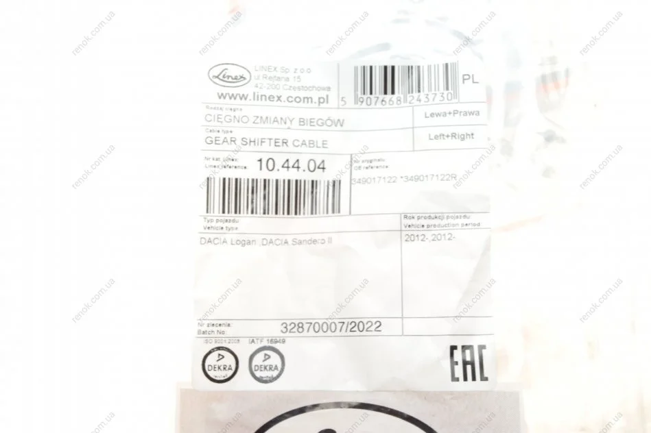Трос кулисы Dacia Logan/Sandero 12- (1004+941 мм) LINEX 10.44.04 (349017122, 349017122R)