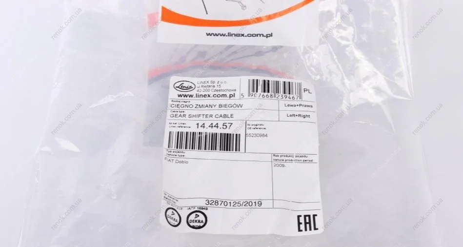 Трос кулисы Fiat Doblo 1.4/1.6D/2.0D 10- (1454/1326) LINEX 14.44.57 (55230984)