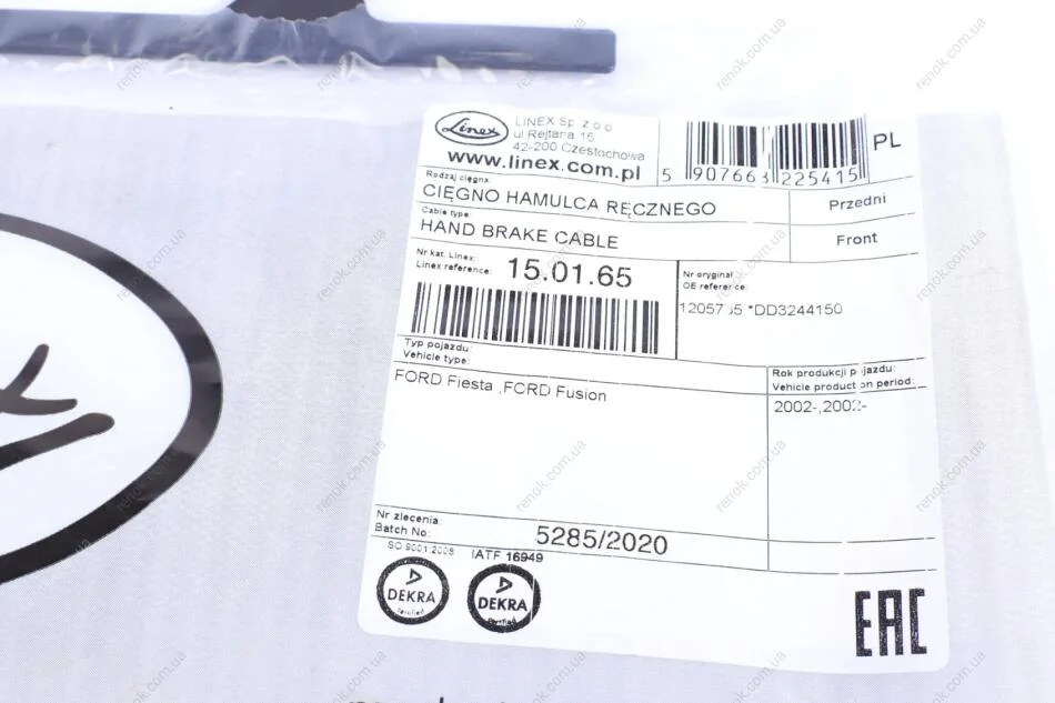 Трос ручника LINEX 15.01.65 (1205735, DD3244150)