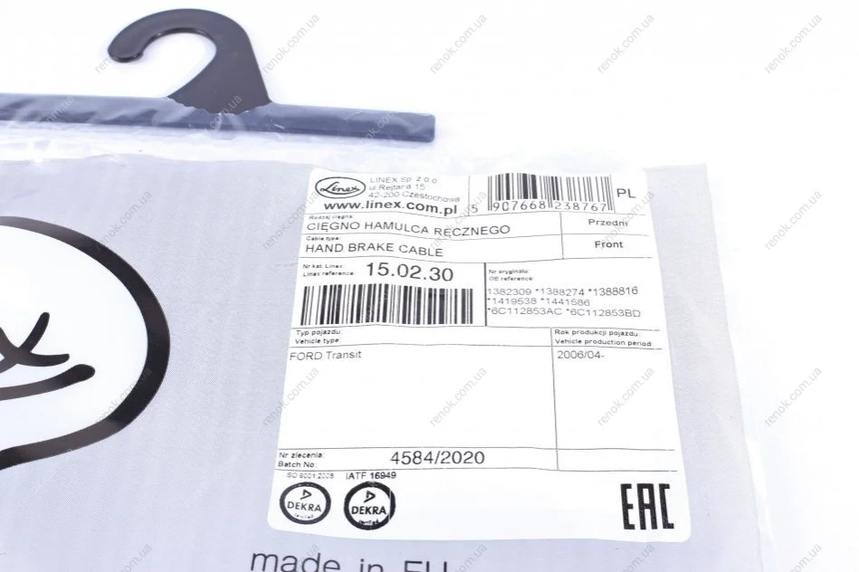 Трос зупиночних гальм LIN15.02.30 LINEX 15.02.30 (1382309, 1388274, 1388816)