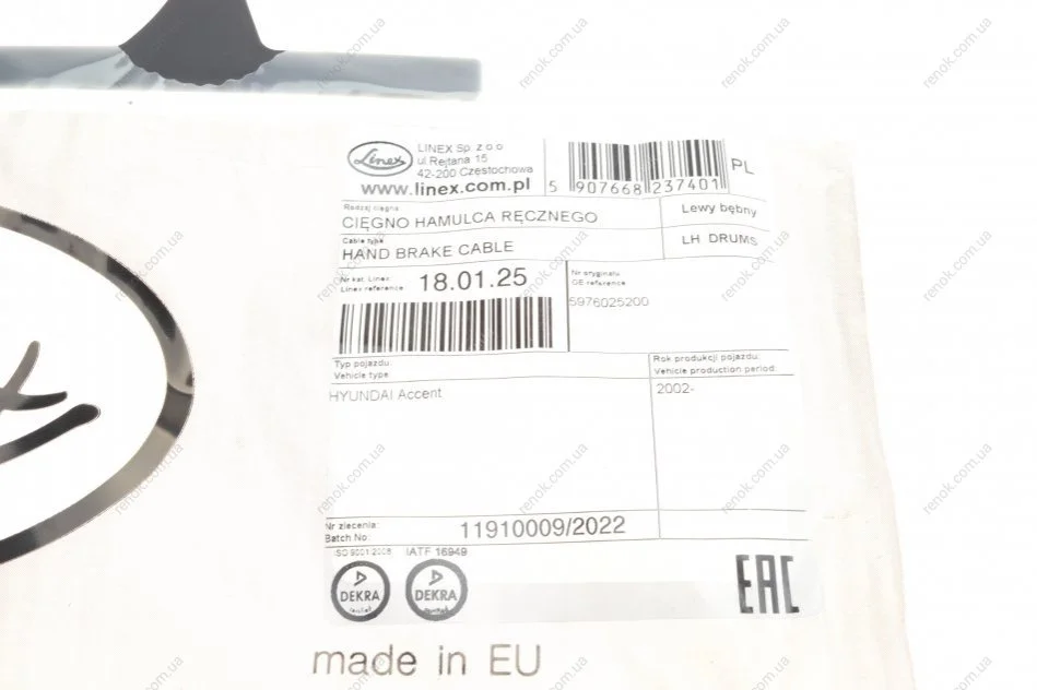 Трос ручного гальма LINEX 18.01.25 (5976025200)