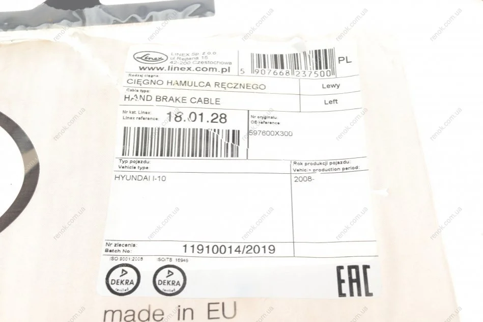 Трос ручного гальма LINEX 18.01.28 (597600X300)
