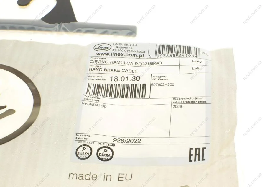 Трос зупиночних гальм LIN18.01.30 LINEX 18.01.30 (597602H300)