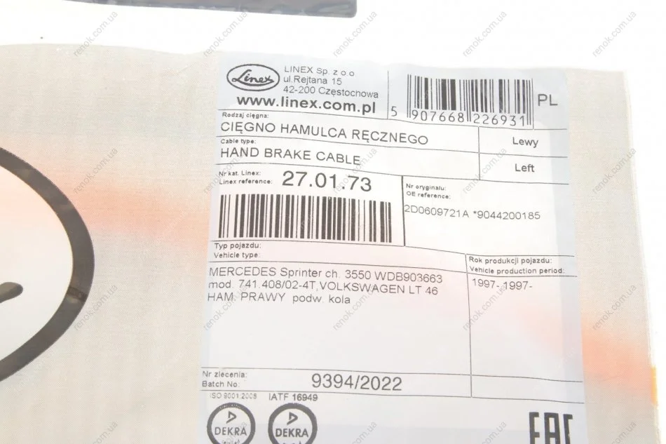 Трос зупиночних гальм LIN27.01.73 LINEX 27.01.73 (2D0609721A, A9044200185, 9044200185)