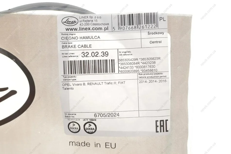 Трос ручного гальма LINEX 32.02.39 (365305429R, 365305623R, 365306084R)