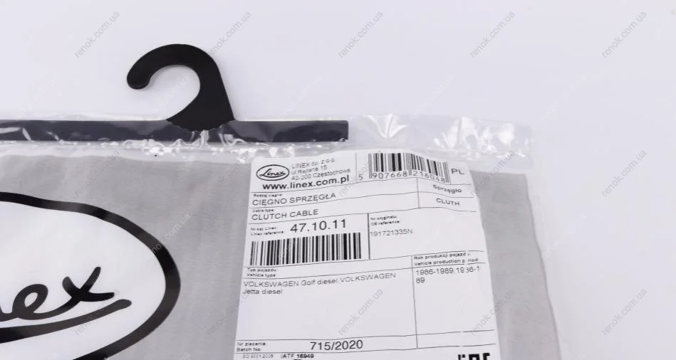Трос сцепления VW Golf/Jetta/Seat Toledo 83-91 (837/498 мм) LINEX 47.10.11 (191721335N)