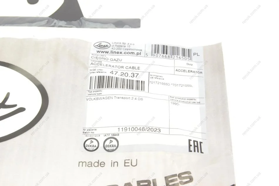 Трос газа VW T4 91-03 (1705 мм) LINEX 47.20.37 (701721555D, 701721555L)