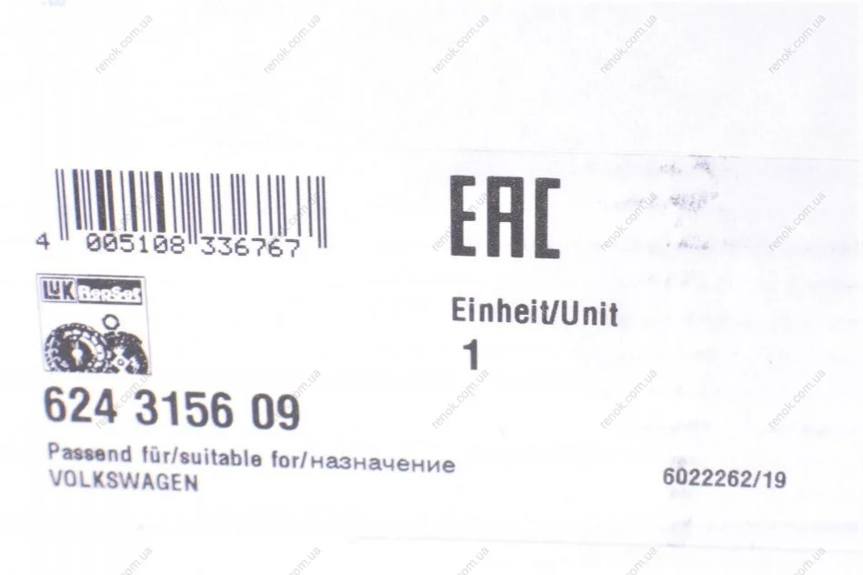Аналоги "624315609 LuK":