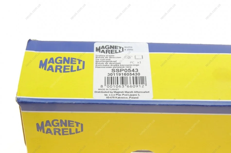 MAZDA Наконечник рулевой тяги прав.Mazda 6 02- MAGNETI MARELLI 301191605430 (gj6e32280, gj6e32280a)