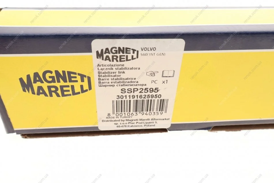 Тяга стабилизатора (переднего) Volvo S60/S80/V70/CX70 97-14 MAGNETI MARELLI 301191625950 (274303, 274456, 30714685)