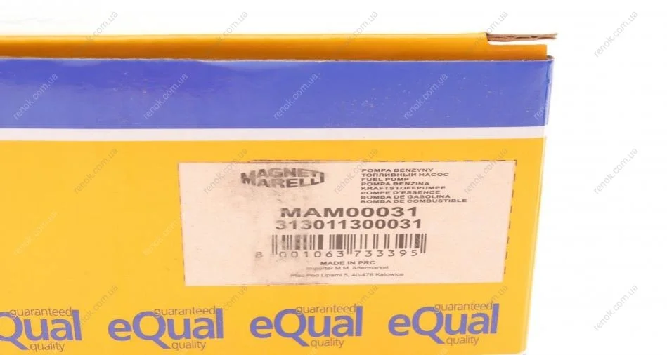 Насос топливный Renault Clio 98-16/Twingo 1.2 96-07 (MAM00031) MAGNETI MARELLI 313011300031 (7700462007, 46475719, 46739809)