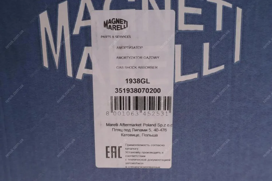 Амортизатор MAGNETI MARELLI 351938070200 (12773308, 344462, 344463)