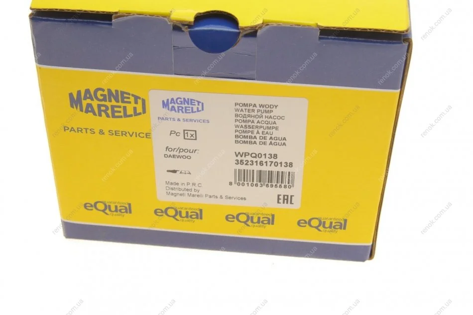 Водяной насос (кор.код. WPQ0138) MAGNETI MARELLI 352316170138 (96182871, 96352650, 96872702)