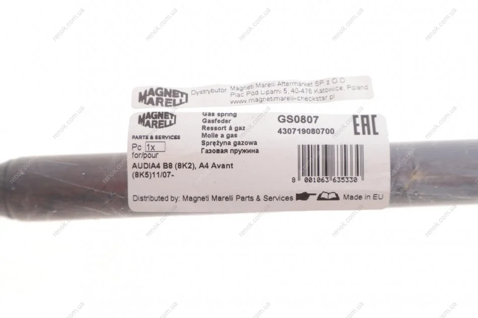 Амортизатор капота MM GS0807 = MAGNETI MARELLI 430719080700 (8T0823359)