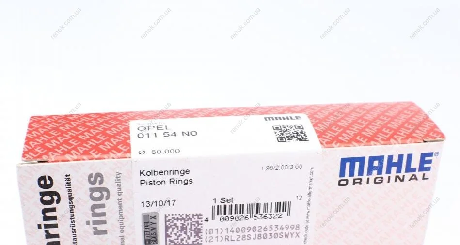 Кольца поршневые Citroen Berlingo/Peugeot Partner 1.8D 96-02 (80.0mm/STD) (1.98-2-3) MAHLE / KNECHT 011 54 N0 (0640K3)