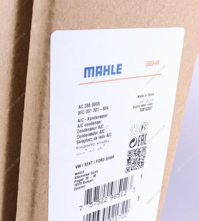 Радиатор кондиционера MAHLE MAHLE / KNECHT AC 358 000S (7M3820411, 7M3820411E, 7M3820411D)