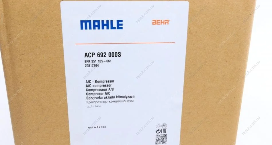 Компрессор кондиционера Audi A4 2.4 01-05 (d=100mm) MAHLE / KNECHT ACP 692 000S (8E0260805AS)