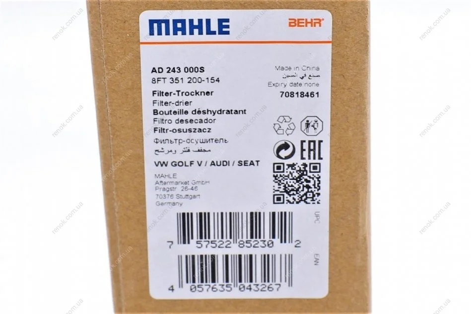 Осушитель кондиционера MAHLE MAHLE / KNECHT AD 243 000S (1K0298403A, 1K0298403, 5C0298403)