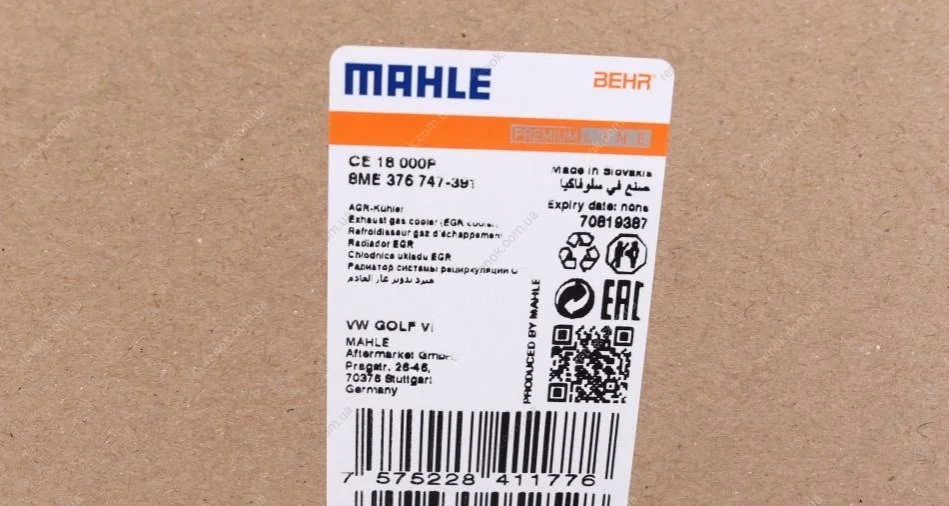 Радиатор рециркуляции ВГ с клапаном EGR VW Caddy IV 2.0TDI 15-/ Golf VII 2.0 TDI 13-16 MAHLE / KNECHT CE 18 000P (04L131512AA)