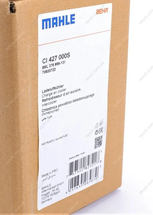 Радиатор интеркулера Fiat Doblo 1.4/1.3D 10- MAHLE / KNECHT CI 427 000S (51783791, 51833106, 55700635)