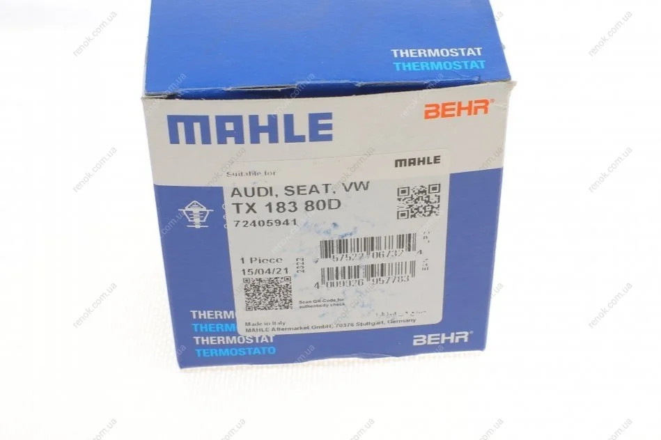 Термостат VW Golf V/Passat/Polo 1.2/1.4TSi/1.6FSI 01-17 (80 °C) MAHLE / KNECHT TX 183 80 D (03C121110L)