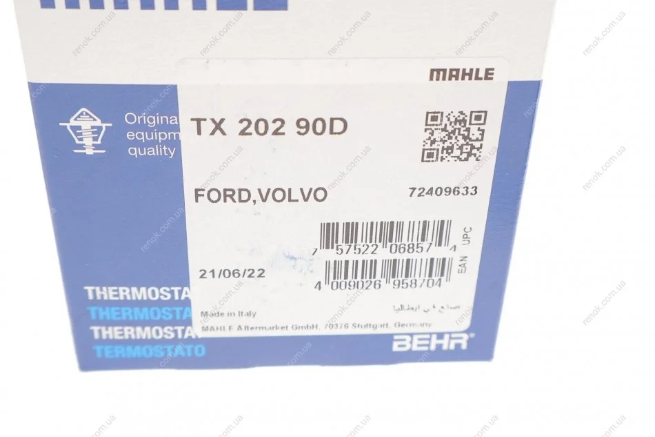 Термостат Ford Focus II/Mondeo IV/Volvo XC70 II/V70 III/S80 II 2.5/V50/C70 II 2.4/2.5 MAHLE / KNECHT TX 202 90D (30713572, 31368377, 31355150)