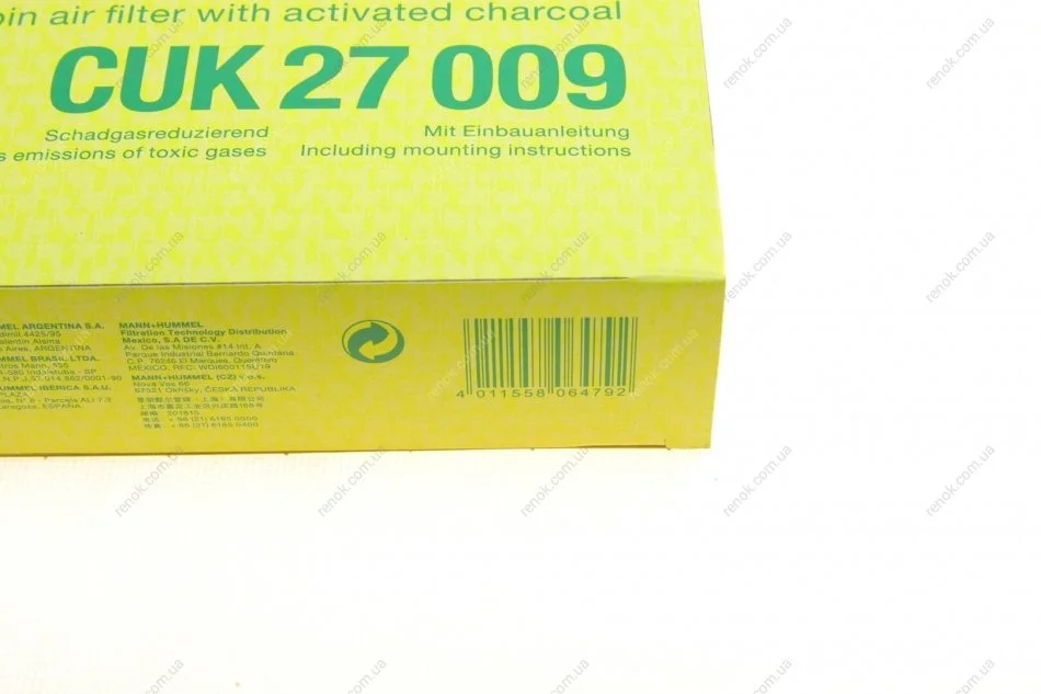 Фильтр салона Renault Trafic III 14-(угольный) MANN CUK 27 009 (272778859R, 272771128R, 272778980R)