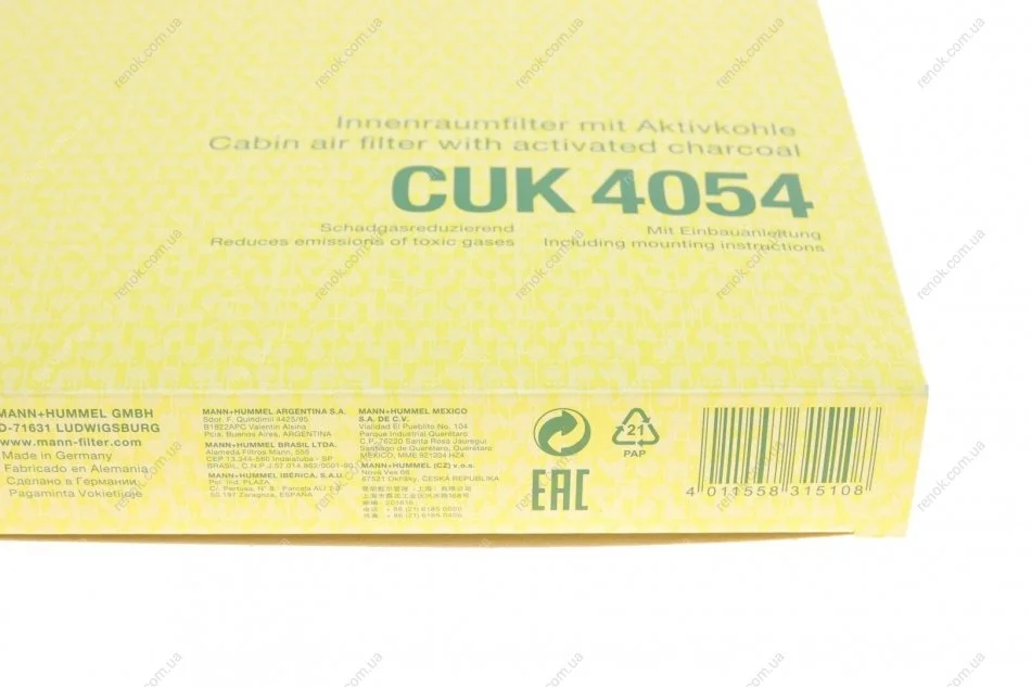 Аналоги "CUK 4054 MANN":