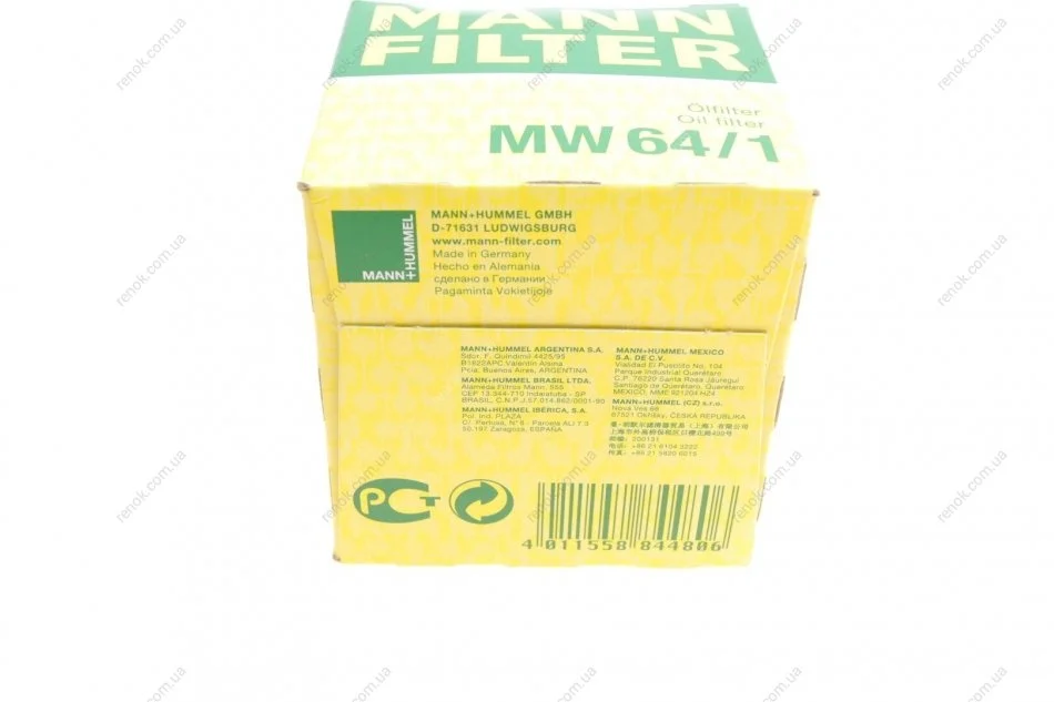 Фильтр масляный Honda CB/CBF/CBR/CTX/GL/NC/Kawasaki GPZ/GTR/Ninja/Yamaha XJ/YZF MANN MW 64/1 (15010MW0000, 15208MM9P03, 15410MCJ003)