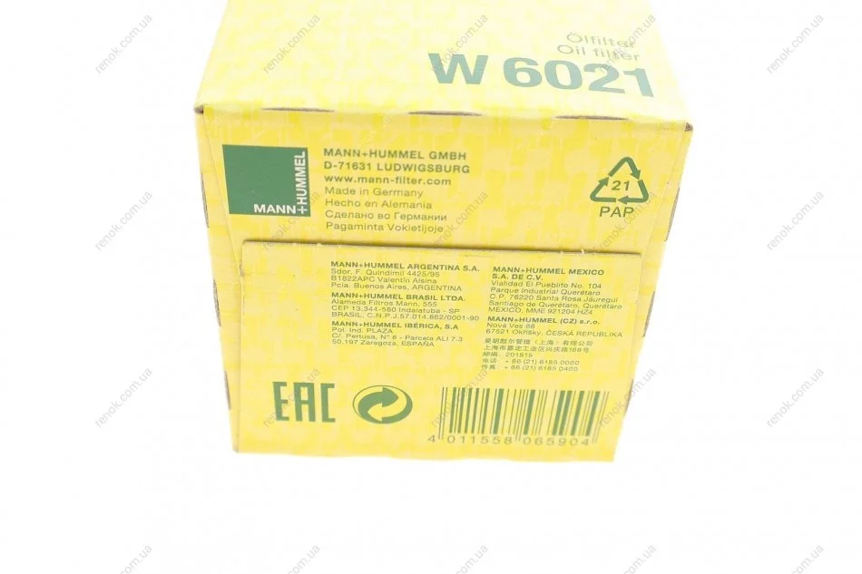 Аналоги "W 6021 MANN":