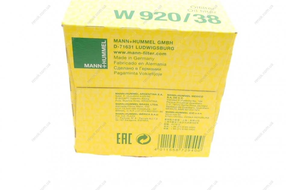 Аналоги "W920/38 MANN":