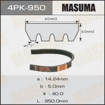 Ремень поликлиновой 4PK- 950 MASUMA 4PK950 (11920AG900, 56992PY3004, BPF315909A)