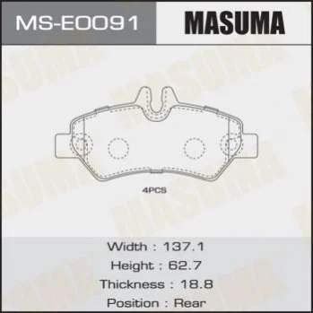 Колодки тормозные задн MERCEDES-BENZ SPRINTER MASUMA MSE0091 (a0044206920, A0084205120)